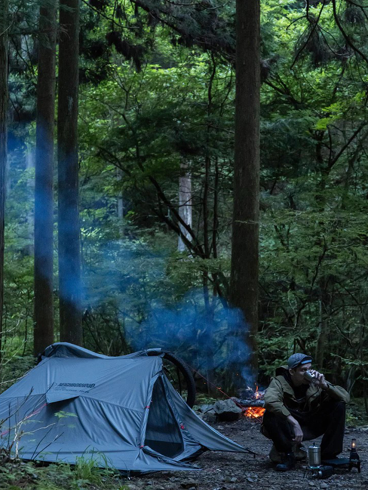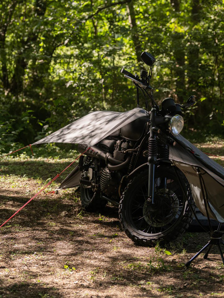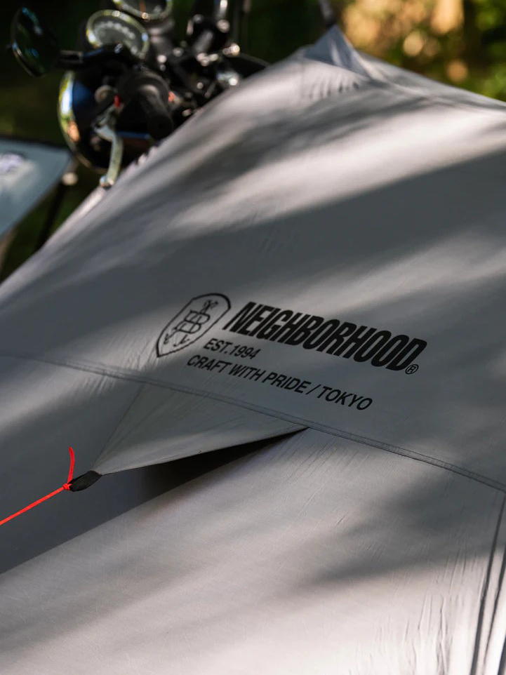 帳篷利用自行車兩側的張力形成緊密而堅固的結構,以便在露營時使用。正面、內袋、支架板、帶蓋裝備存儲區域印有徽標。與ABEL BROWN 的合作款。
