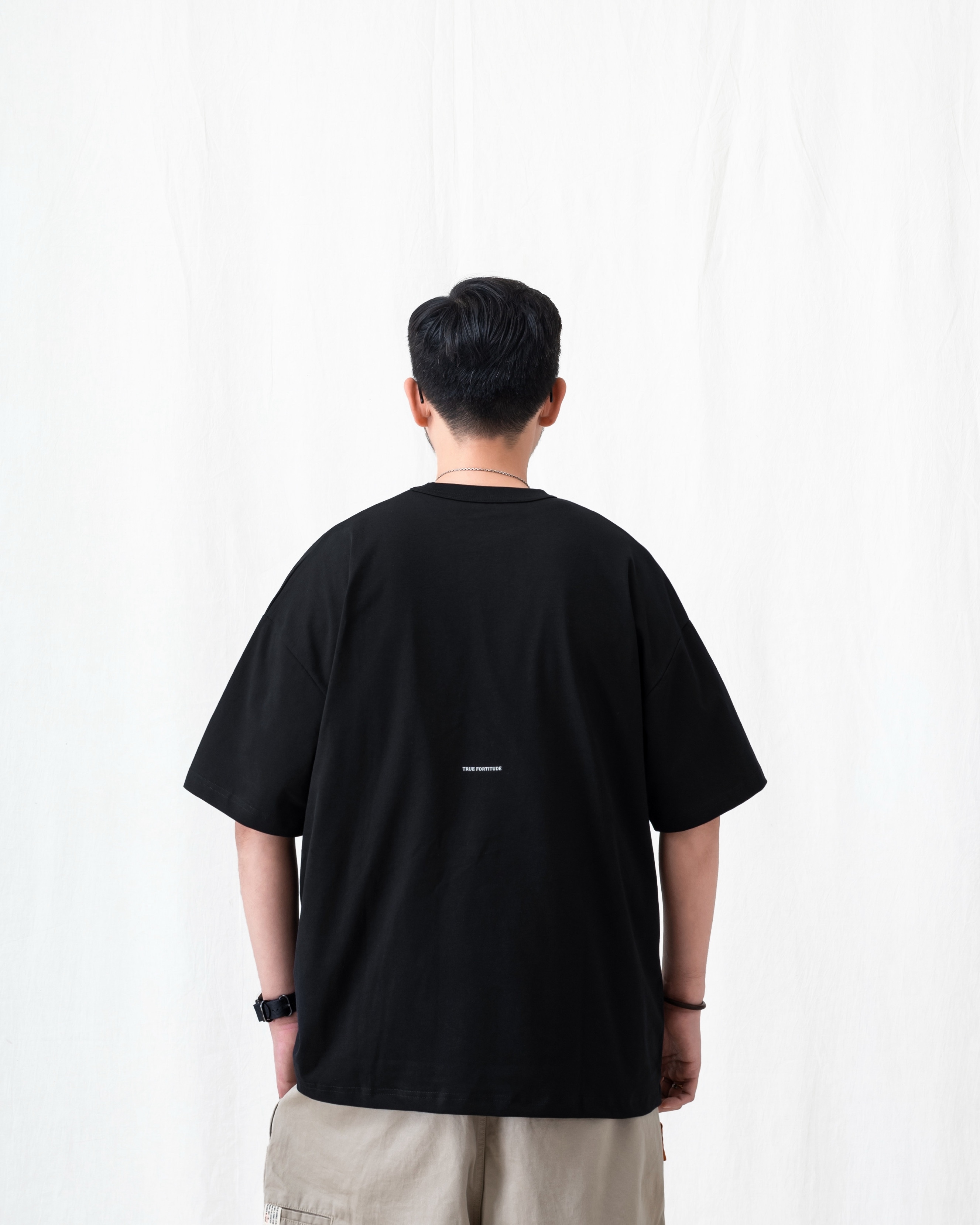 ● 在袖口、衣襬安排黑色視覺織標細節,提升整體質感。