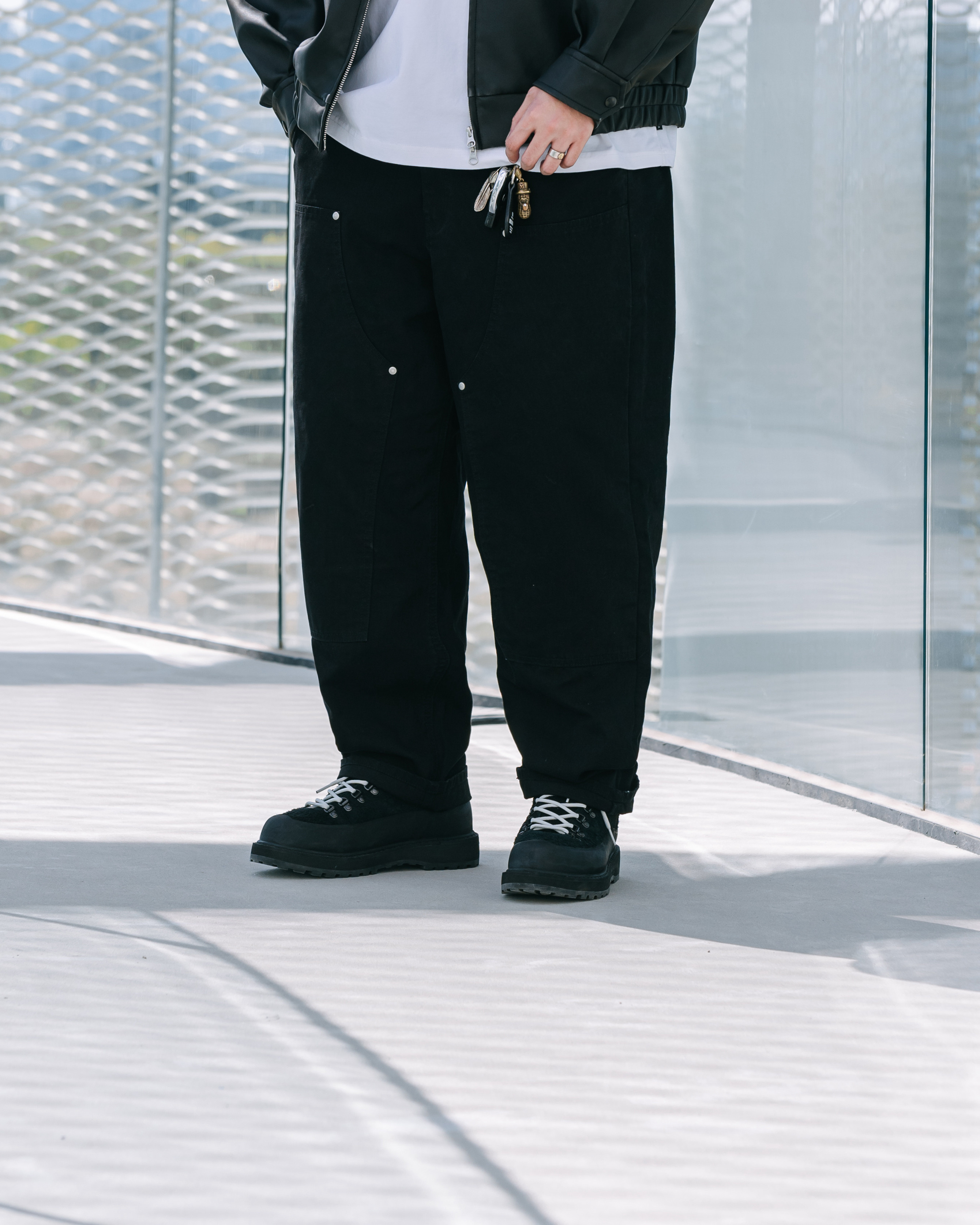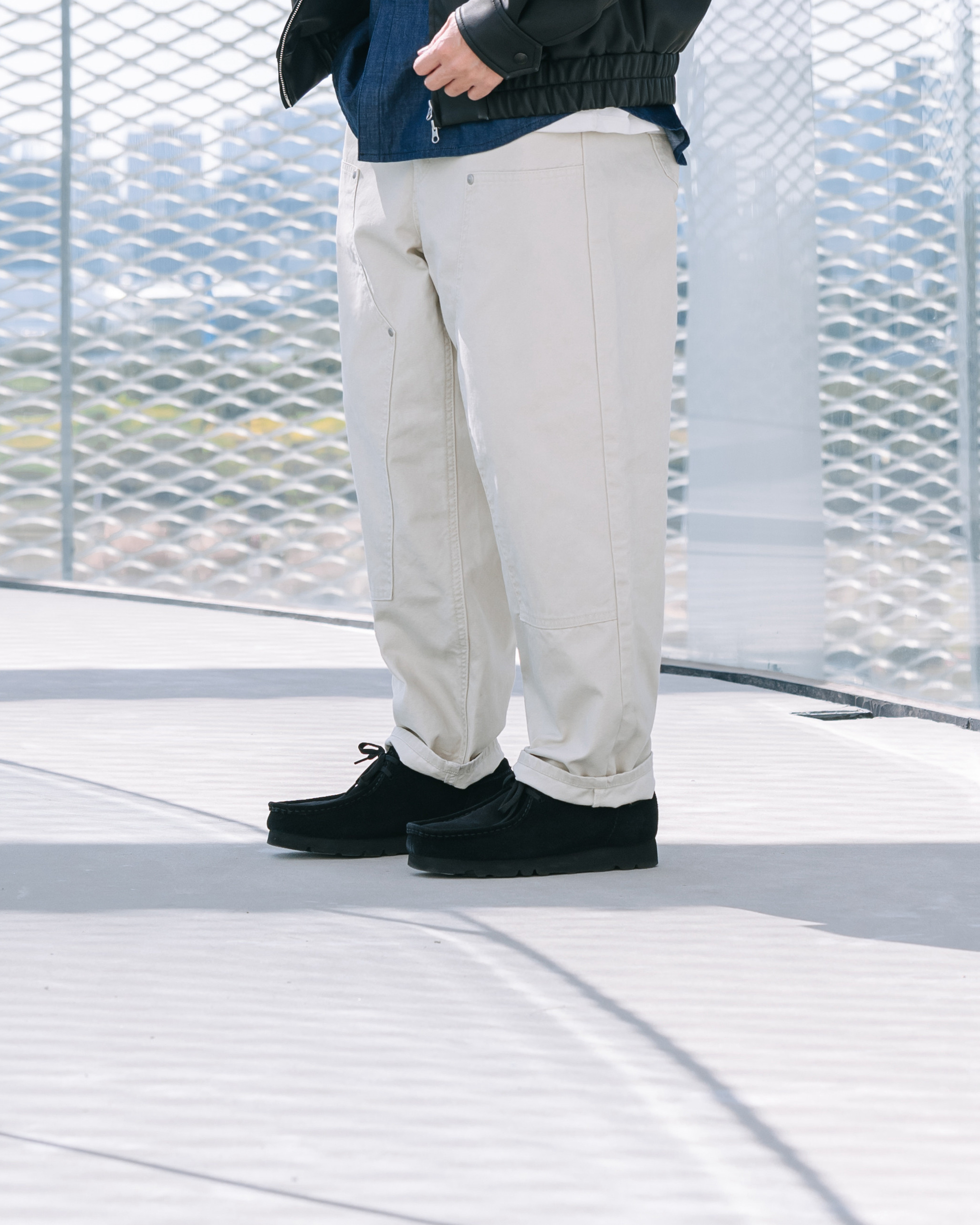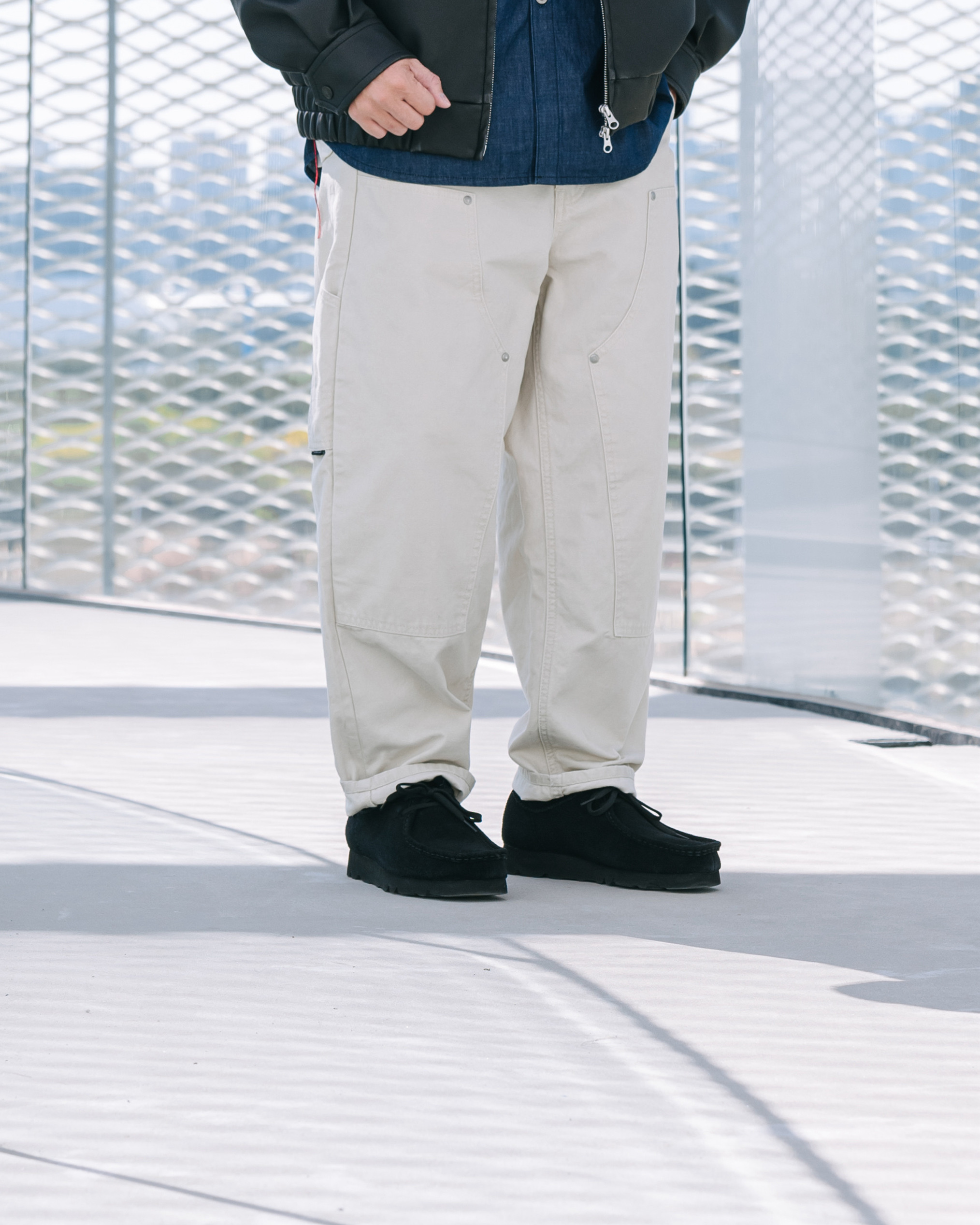 ● 經典雙膝補丁設計,搭配日本製 UNION MADE 主釦與鉚釘細節,提升整體使用質感與耐用度。