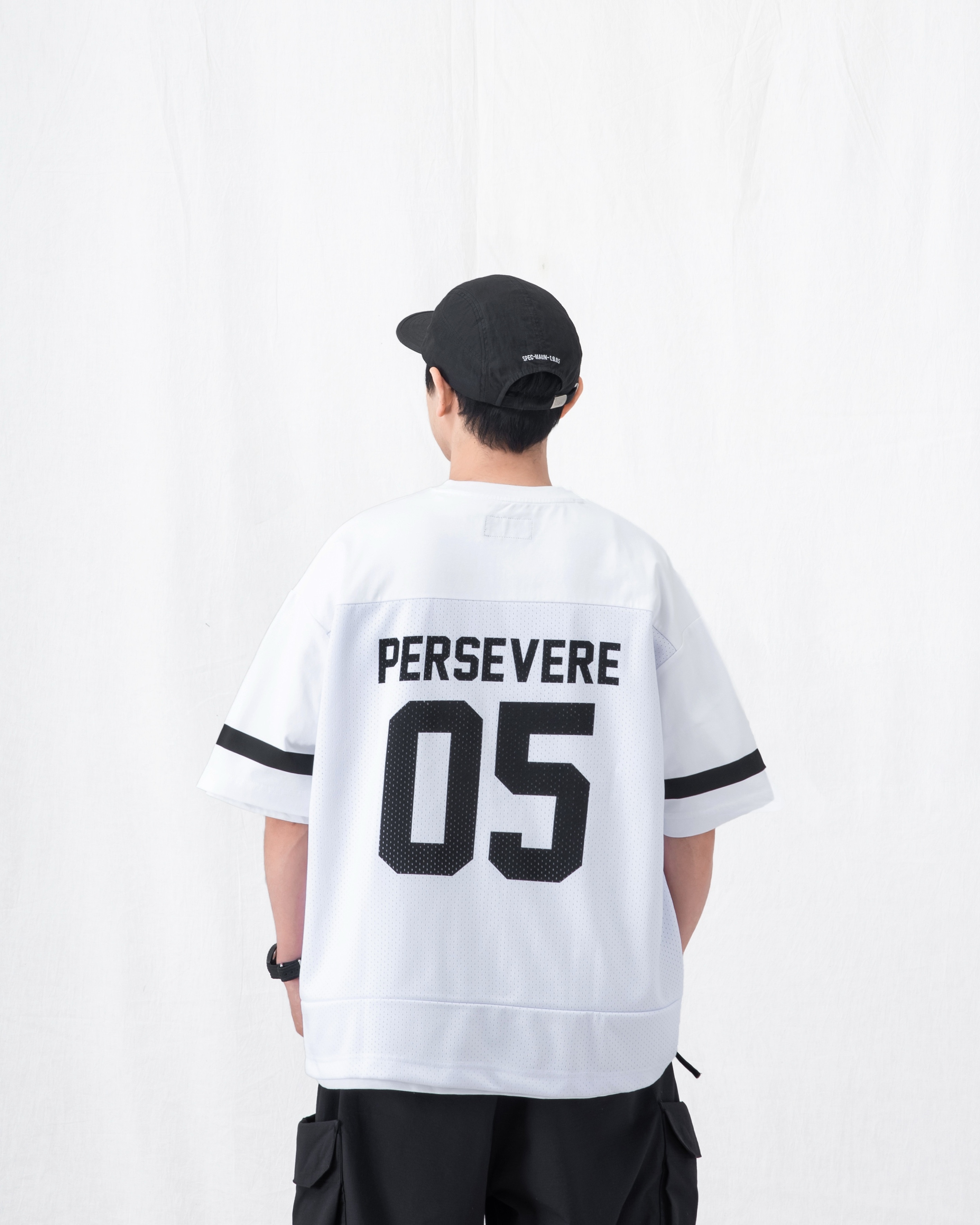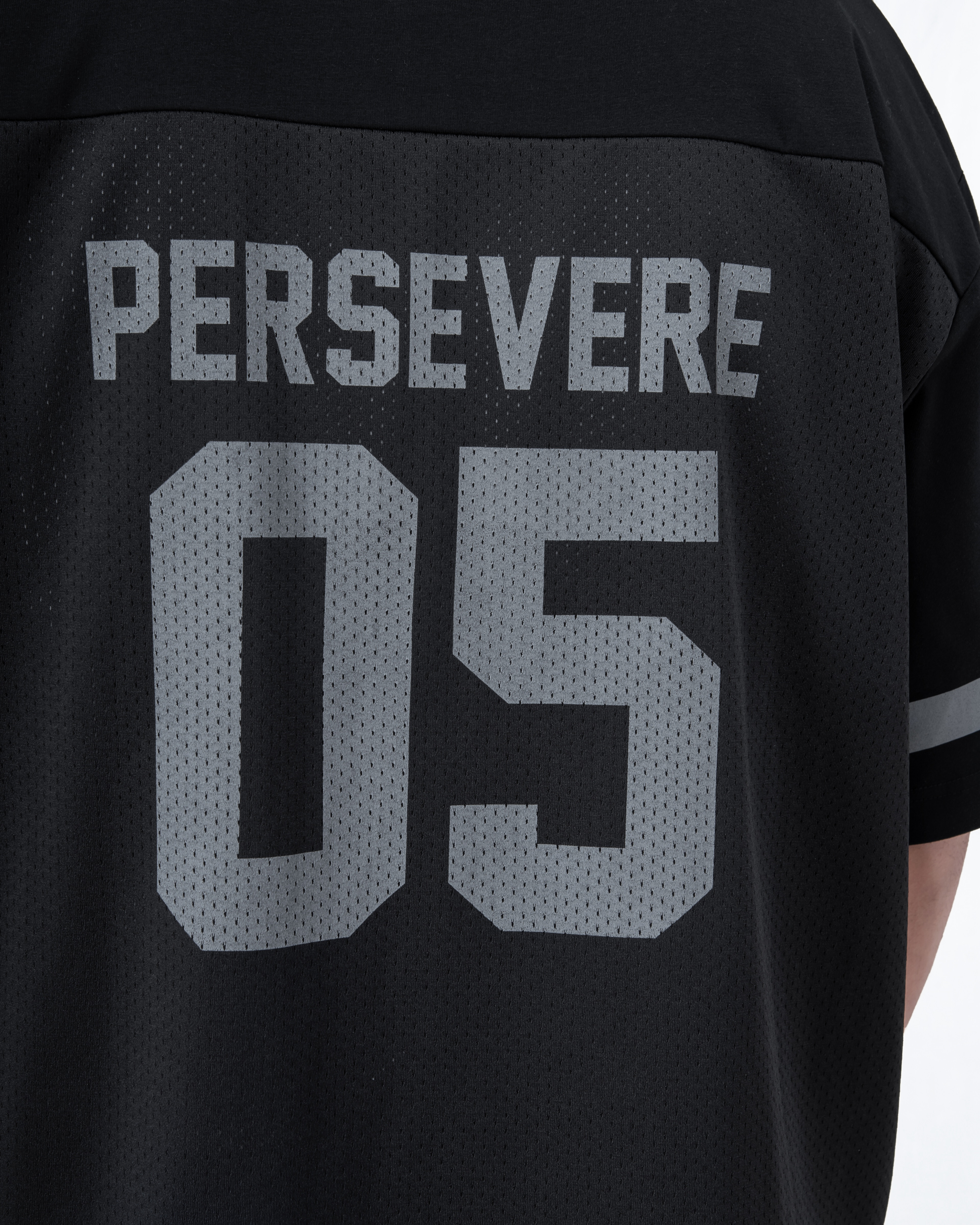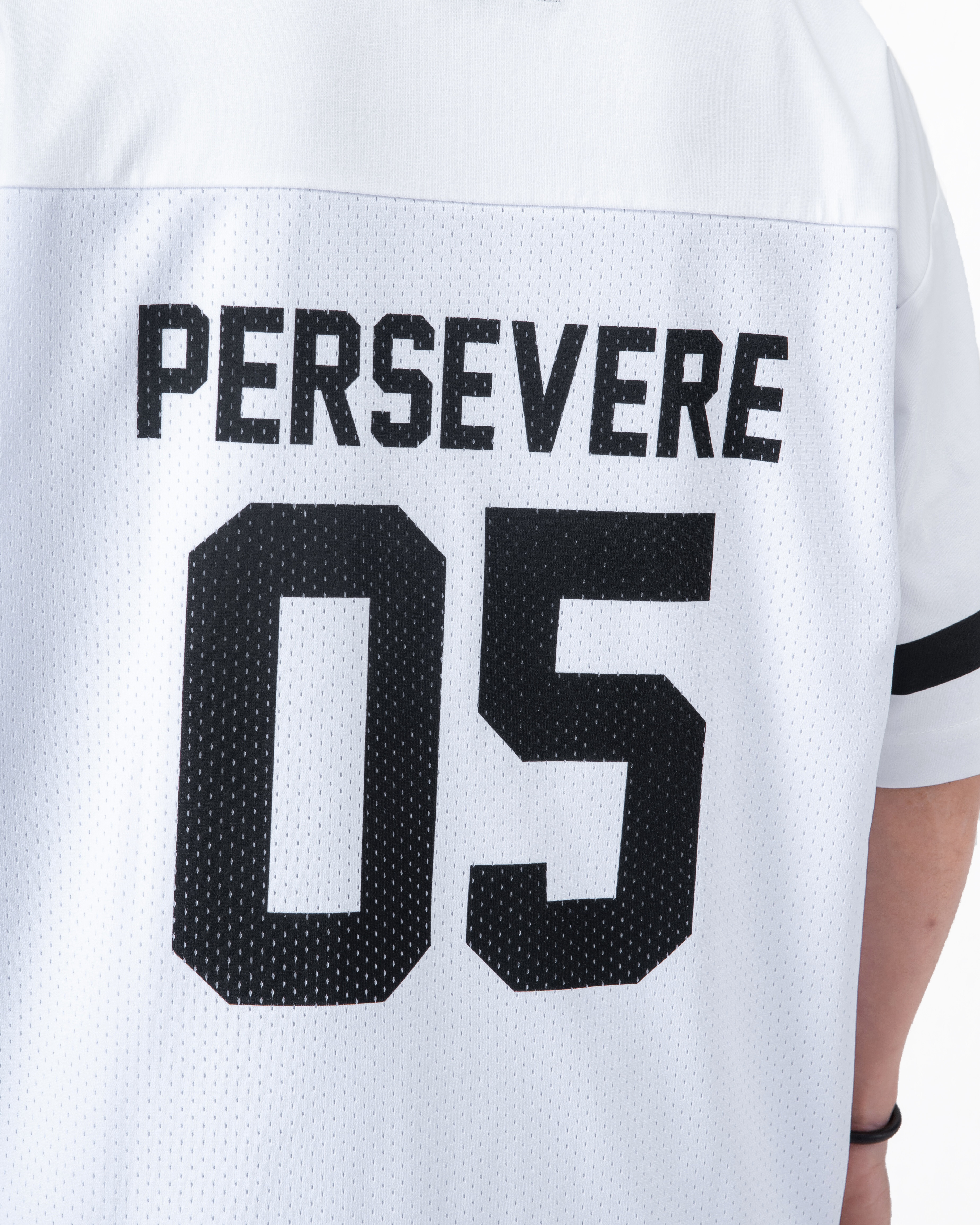 PERSEVERE 首發拼接球衣短袖T恤全新發售,選用高密度網眼材質,拼接SORONA®涼感棉質混紡布料製作,營造豐富的視覺層次,面料兼具透氣與涼爽等機能特性,帶來清爽舒適的穿著體驗。版型以寬鬆落肩為輪廓設定,搭配品牌字樣印刷設計,進一步提升整體辨識度。細節方面,領口採用棉質羅紋設計,增添日常著用時的舒適感。